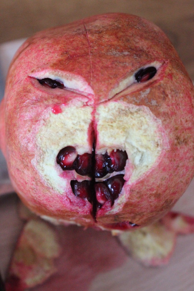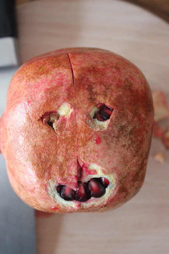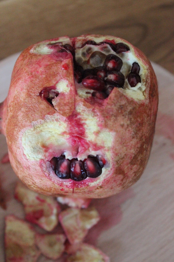 Nein, er hatte wirklich nichts Schlimmes im Sinn. Einfach nur einen Granatapfel öffnen und eingerührt in Quark, gesüßt mit etwas Honig essen. Nicht mehr, nicht weniger.